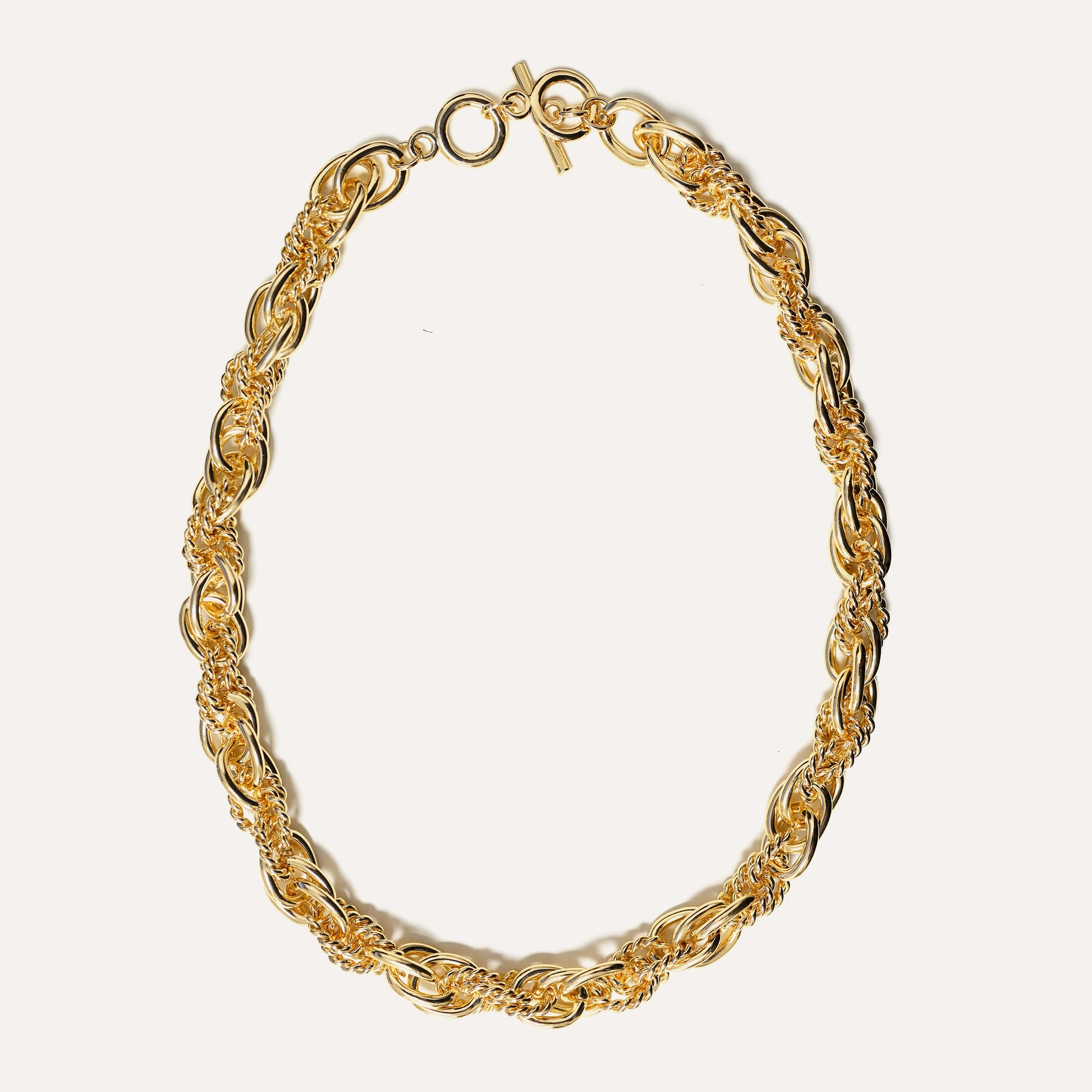 Collana Catena a Doppia Maglia con Anelli Lisci e Intrecciati Alternati