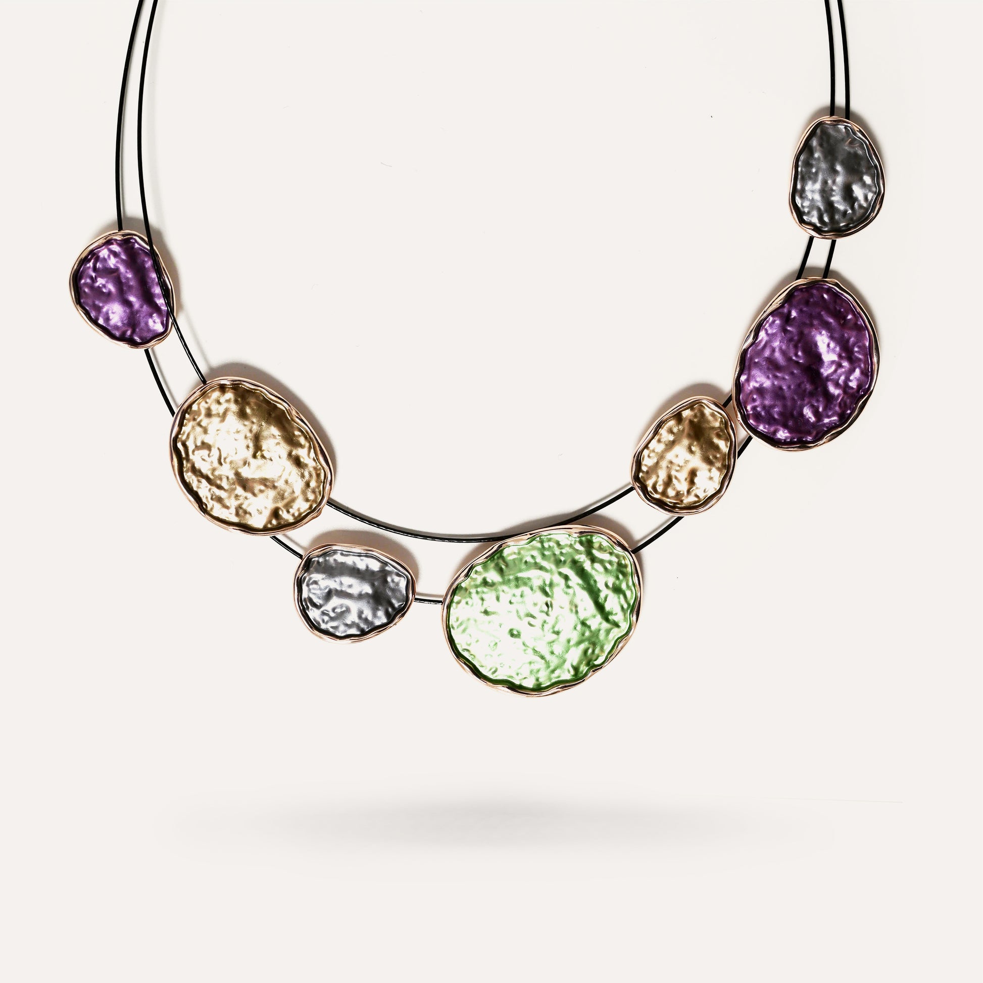 Collana Smaltata con Filo Nero in Acciaio